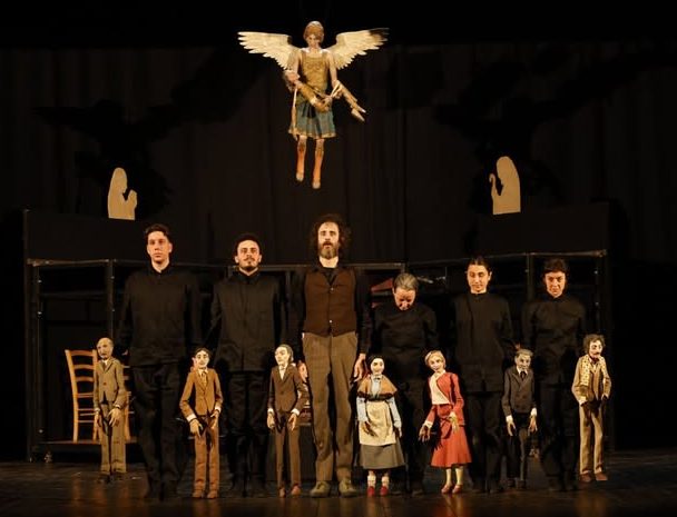 La commedia di Eduardo De Filippo, che ha fondato la drammaturgia contemporanea italiana e dettato i nuovi canoni della recitazione attoriale, è riproposta con tutta la forza del suo testo in questa rappresentazione di attore cum figuris, i 7 pupazzi animati in scena da manovratori che hanno recitato senza parole, animando i corpi di legno, facendoli vivere mentre la voce di Luca Saccoia esprimeva la loro anima.