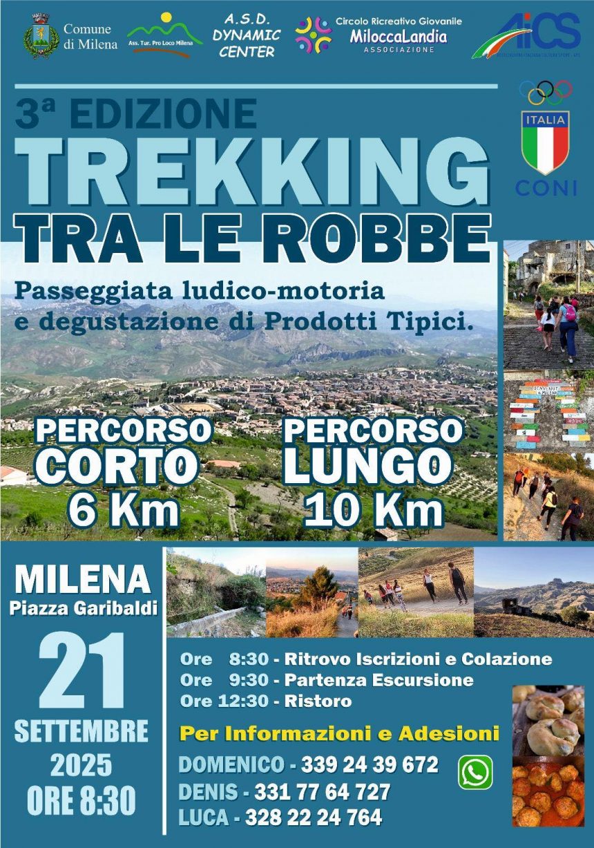 Eventi“Trekking tra le robbe”, camminare e degustare a Milena domenica 21 settembre Ultimo aggiornamento: Settembre 20, 2025 7:51 pm redazione 125 Views Condividere CONDIVIDERE TAGGED:Comune di Milena Condividi Questo Articolo Facebook Twitter Whatsapp Whatsapp Copy Link Print