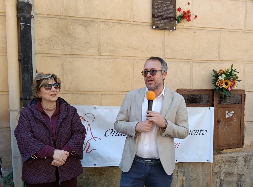 Dopo la casa di Giuseppina Panzica i partecipanti hanno percorso la via Luigi Cortese, il comandante partigiano nisseno che guidò la liberazione di Parma, di cui era presente il figlio Enrico, fino al piazzale di fronte all’Università, dove si trovano le Pietre di Inciampo che ricordano tre nisseni deportati e uccisi nei lager del nazismo.