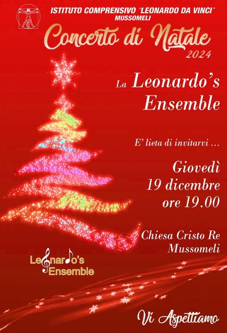 Giovedì 19 dicembre, alle ore 19:00, presso la chiesa di Cristo Re, “Concerto di Natale 2024”, esibizione della “Leonardo’s Ensemble”, l’orchestra degli alunni scuola secondaria di primo grado del plesso “Centrale” “Leonardo da Vinci” che, accompagnati dal coro degli alunni delle classi quinte della scuola primaria del plesso “Madonna di Fatima”, hanno eseguito un suggestivo repertorio musicale, a cura dei docenti di strumento musicale.