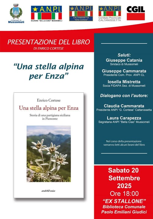 Oggi Mussomeli ricorda Enza Noto Lomanto, presentando il libro di Enrico Cortese, “Una stella alpina per Enza“, a cura dell’Amministrazione comunale, dell’ANPI e della CGIL, sabato 20 settembre alle 18, alla Biblioteca comunale (ex Stallone).