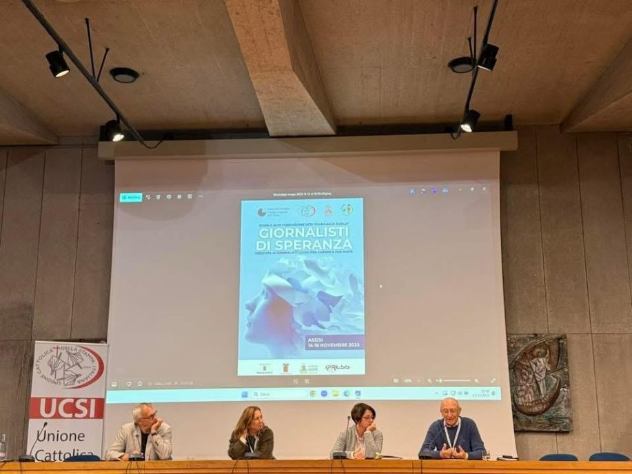 Assisi, 16 novembre 2025 – «All’inizio fu un sogno di pochi, poi divenne esperienza di molti; oggi è un fiume carsico al servizio della missione culturale del giornalismo italiano». Con queste parole di padre Francesco Occhetta, già consulente spirituale dell’associazione, Vania De Luca – prima efinora unica donna presidente nazionale dell’UCSI (Unione Cattolica Stampa Italiana)– ha aperto il suo intervento alla Scuola di Alta formazione giornalistica “Gianfranco Zizola”, tenutasi ad Assisi dal 14 al 16 novembre.