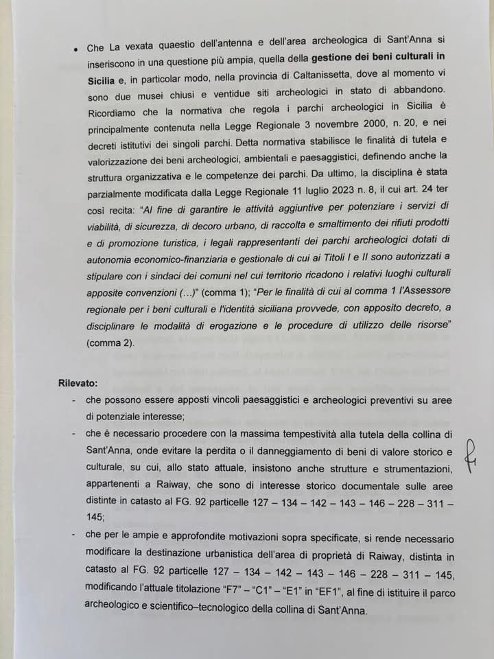 La proposta è stata condivisa dai componenti della commissione consiliare urbanistica e approvata all’unanimità dal Consiglio Comunale, dando così alla città di Caltanissetta la possibilità di tutelare un bene culturale importantissimo anche senza la presenza dell’antenna RAI.