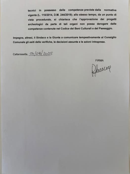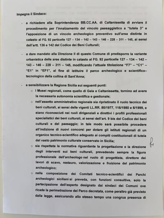 La Mozione ha individuato inoltre la necessità di dotare le Soprintendenze di figure professionali specialistiche adeguate, ed in particolare di dotare i Musei regionali (come quelli di Caltanissetta e Gela) della necessaria autonomia scientifica e gestionale.